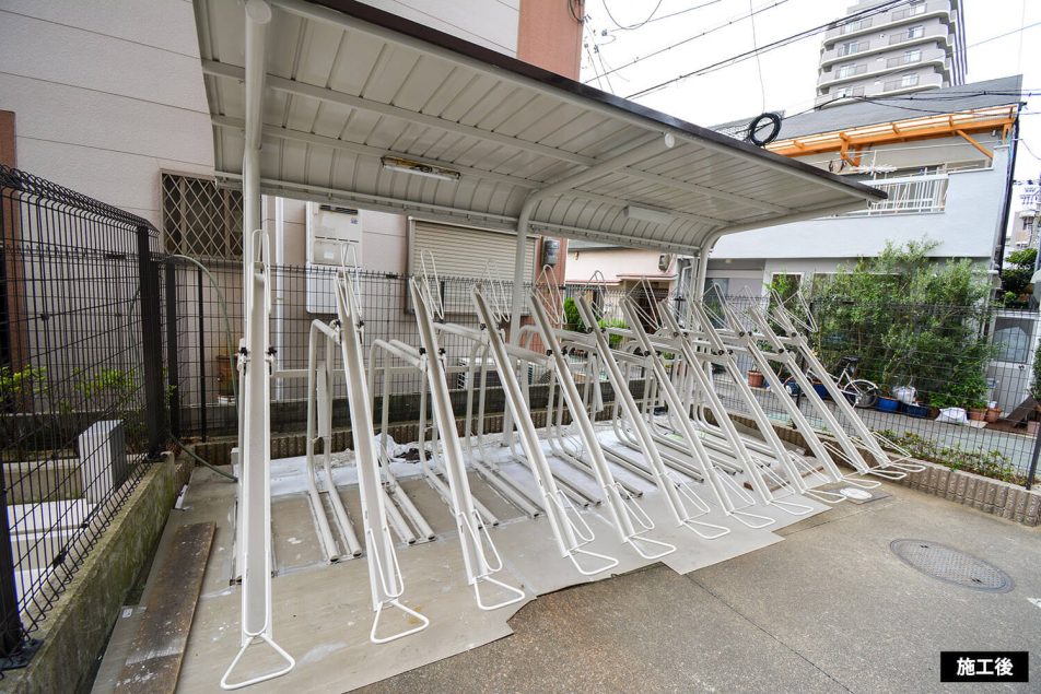 玄関ポーチの劣化が酷かったのですがケレン錆止めを入念に行い塗装を致しました。居住者様の車の移動がありましたがご協力ありがとうございました。
