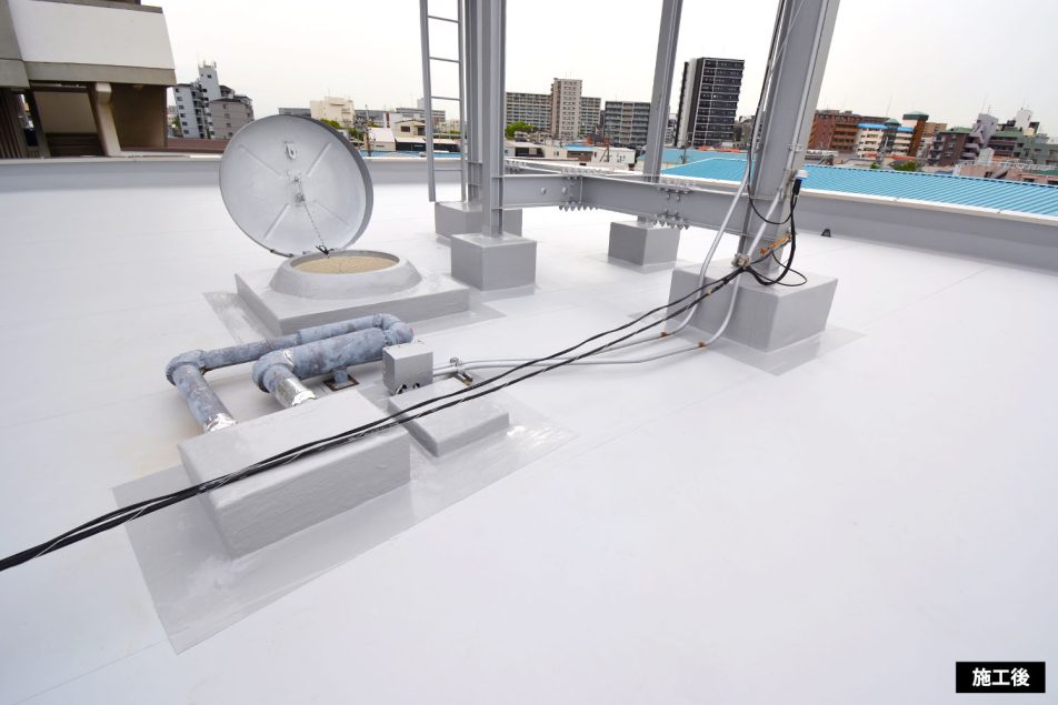 施工実績 works 工事内容 大規模修繕工事▶ 各種リニューアル工事 防水工事 ▶ 塗装工事 ▶ 外壁補修工事 ▶ 建築営繕工事 ▶ 過去実績▶ 大規模修繕工事 各種リニューアル工事▼ 防水工事 塗装工事 外壁補修工事 建築営繕工事工事 過去実績▶ 防水工事 中尾ハイツ 立上りの形状が斜壁になっており納まりに苦労しましたが下地との接着を確認して入念に施工しました。 防水工事 年 月 2025.05 所在地 大阪市 内 容 屋上塩ビシート防水機械固定工法、ウレタン塗膜防水 一覧に戻る