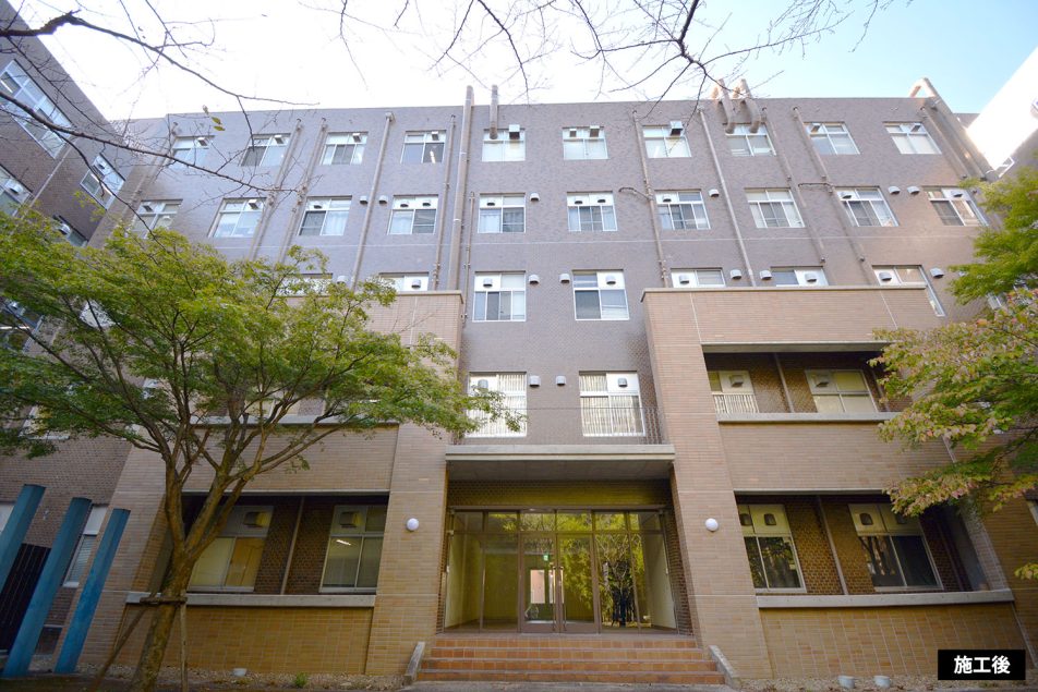 校舎建物では講義中の状況でしたので臭いの問題がありました。今回仕様をオール水性仕様に変更して作業行いましたので講義に問題無く無事完成しました。