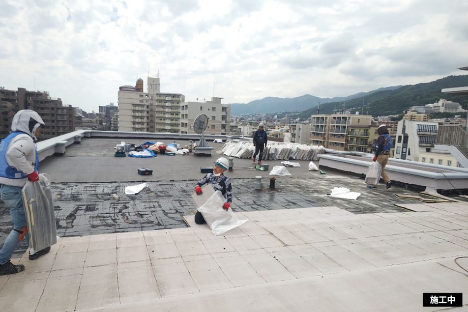 | 内 容 | 屋上改質アスファルト断熱防水工事、ウレタン塗膜防水 |